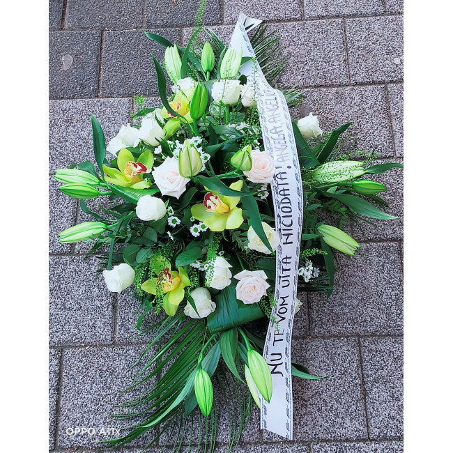 Aranjament funerar coroana elegant potrivit pentru a aduce un omagiu celor dragi.