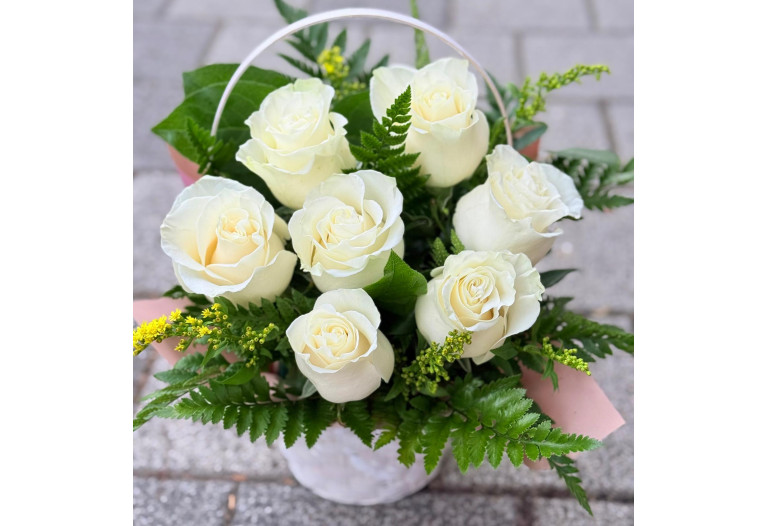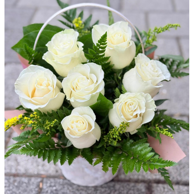 Cos 7 trandafiri albi