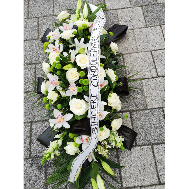 Aranjament funerar elegant potrivit pentru a aduce un omagiu celor dragi.