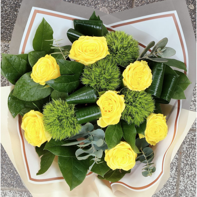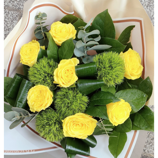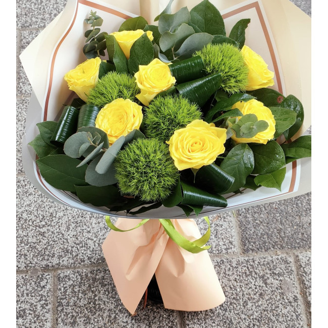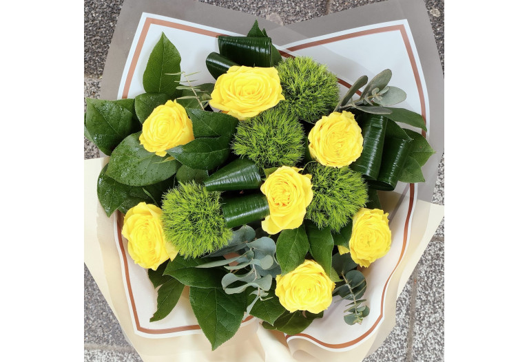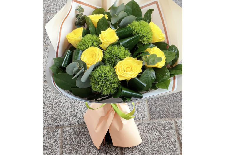 Buchet mixt. Compozitie: trandafiri, dianthus.