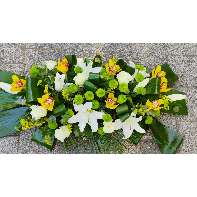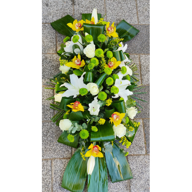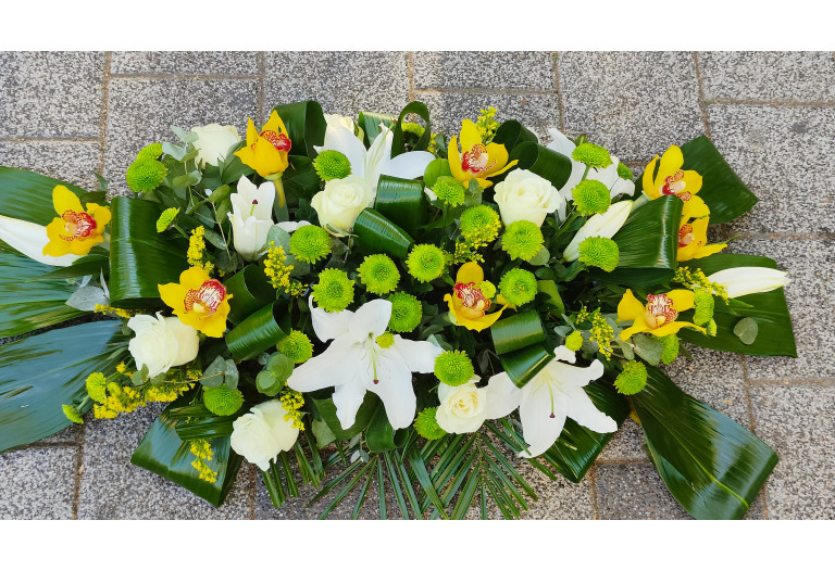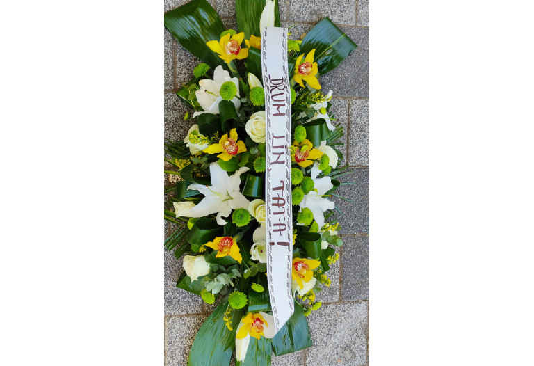 Aranjament funerar elegant potrivit pentru a aduce un omagiu celor dragi.
