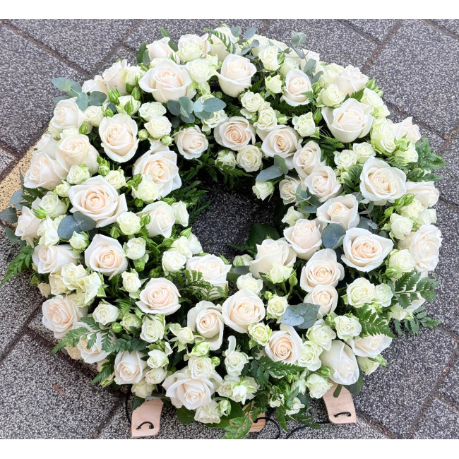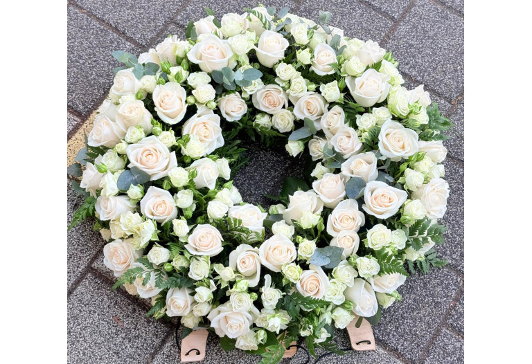 Coroana funerara eleganta potrivit pentru a aduce un omagiu celor dragi.