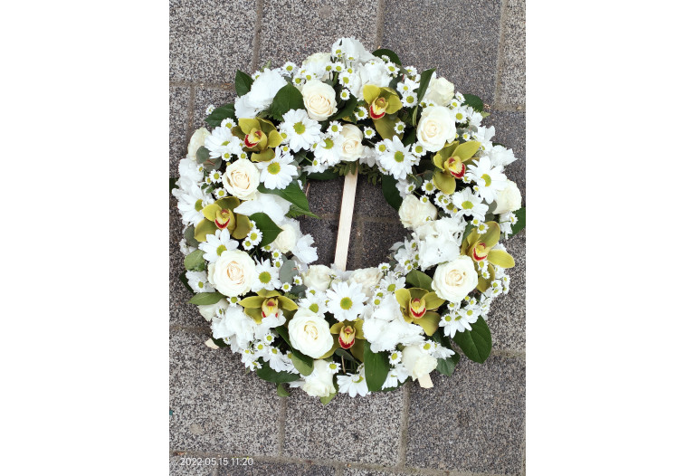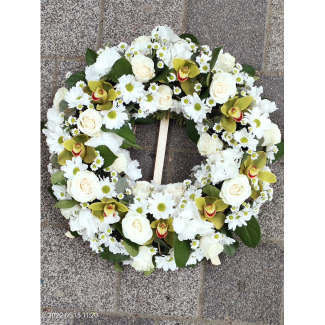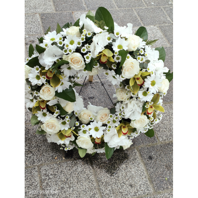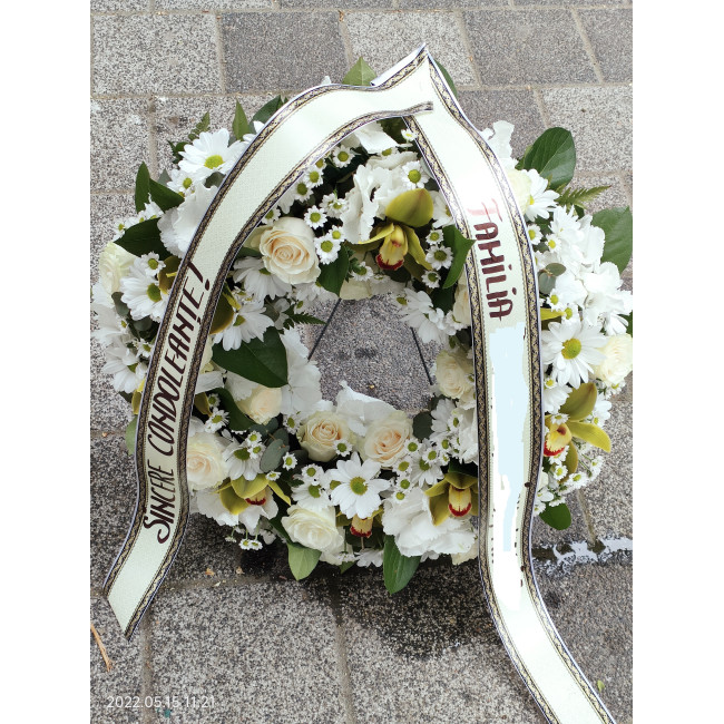 Coroana funerara eleganta potrivita pentru a aduce un omagiu celor dragi.