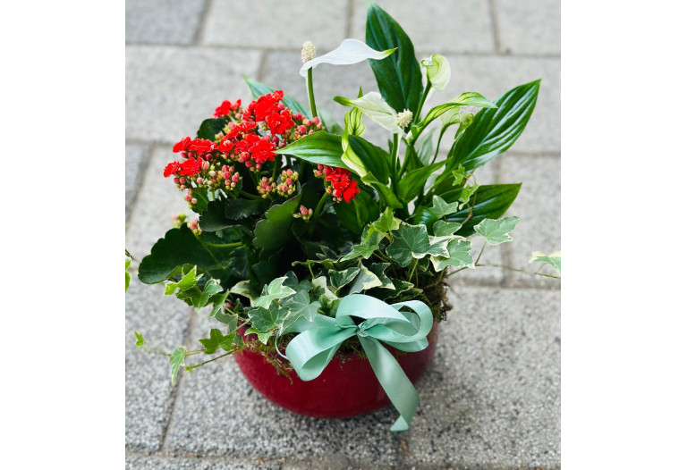 Aranjament plante in vas ceramic Compozitie: kalanchoe, spathiphyllum, iedera