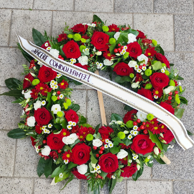 La fiecare aranjament funerar includem gratuit o panglica lenta pe care vom scrie mesajul. Serivciul de livrare aranjamente funerare este gratuit in orasul Constanta. Pentru cartierele exterioare Tomis Plus, Palazu Mare, Mamaia si Mamaia Nord se percepe taxa de 20 lei. Pentru orasele Navodari, Cumpana, Agigea, Eforie Nord, Eforie Sud, Techirghiol, Valu lui Traian, se percepe taxa de transport de 30 lei.