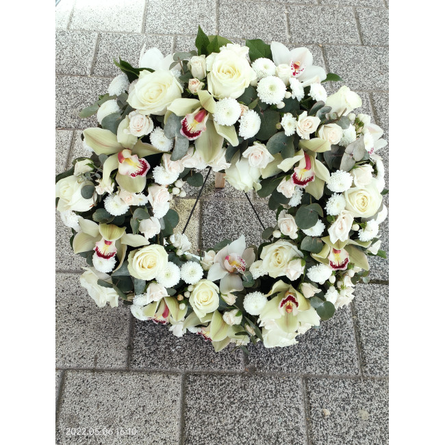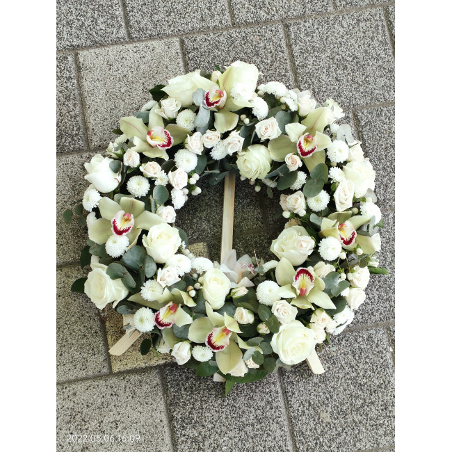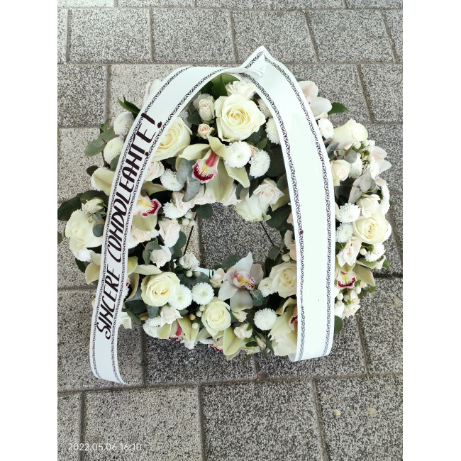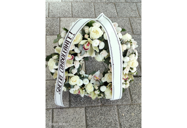 Coroana funerara eleganta potrivita pentru a aduce un omagiu celor dragi.
