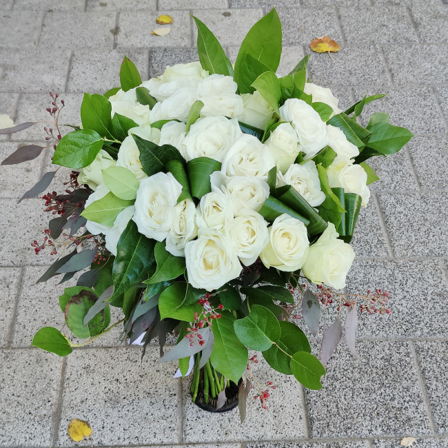 Florile folosite in realizarea aranjamentului sunt proaspete si de cea mai buna